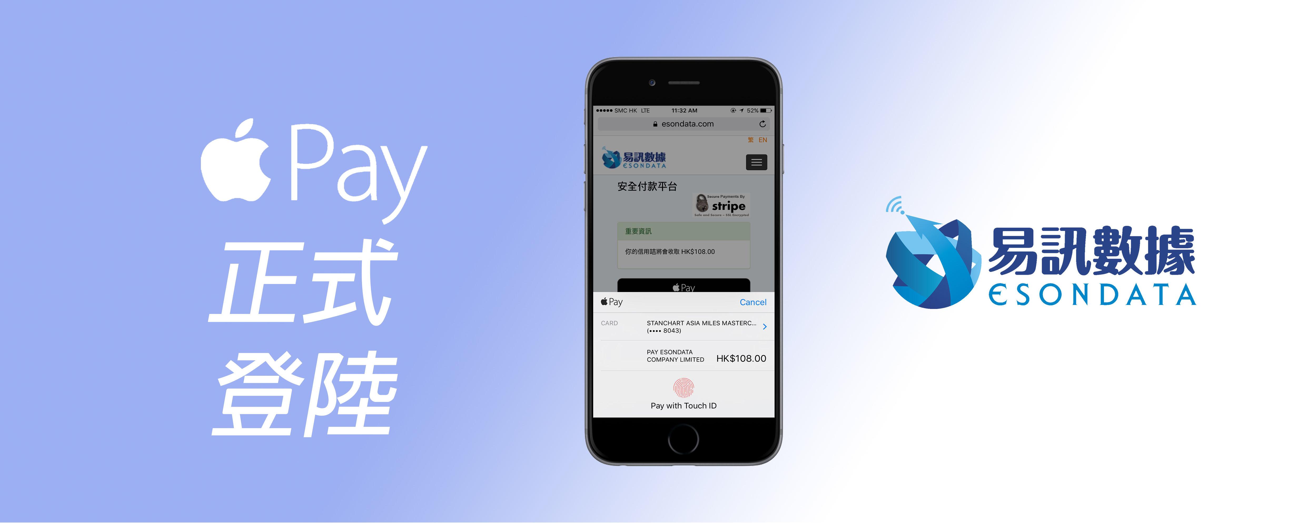 Apple Pay正式登陸Esondata!由而家開始,係手機上登陸我地網站,支付既時候可以選擇翻使用Apple Pay!