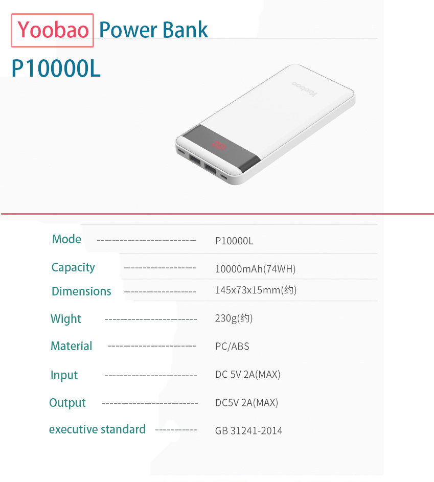 Yoobao 10000mAH External Battery (Light blue)(Buy)