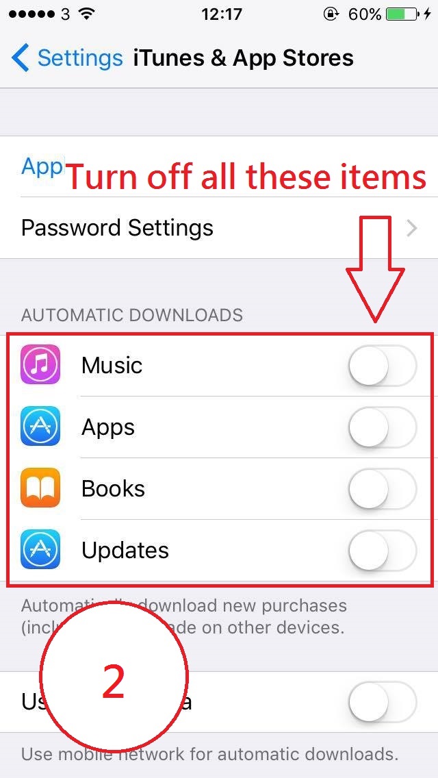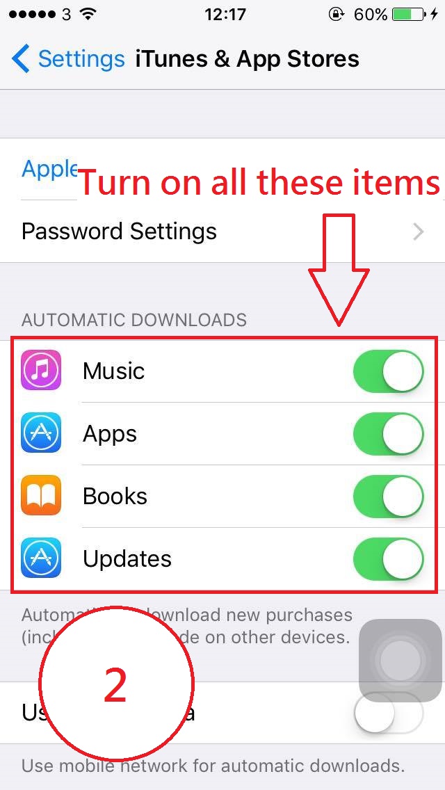 2. Turn on automatic downloads of iTunes & App Stores