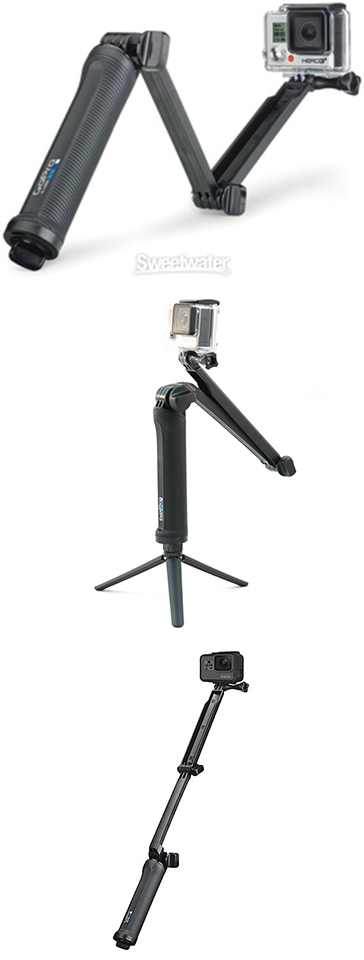使用折疊臂輕鬆自拍,且不會拍到固定座。手柄可兼做攝像機把手,內藏一個輕便的迷你三腳架,可單獨使用,也可與手柄一起使用。