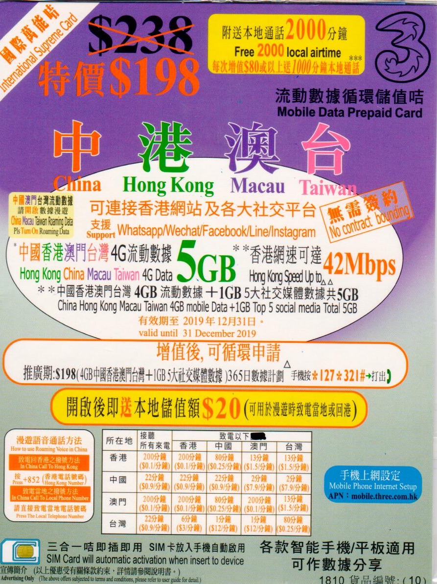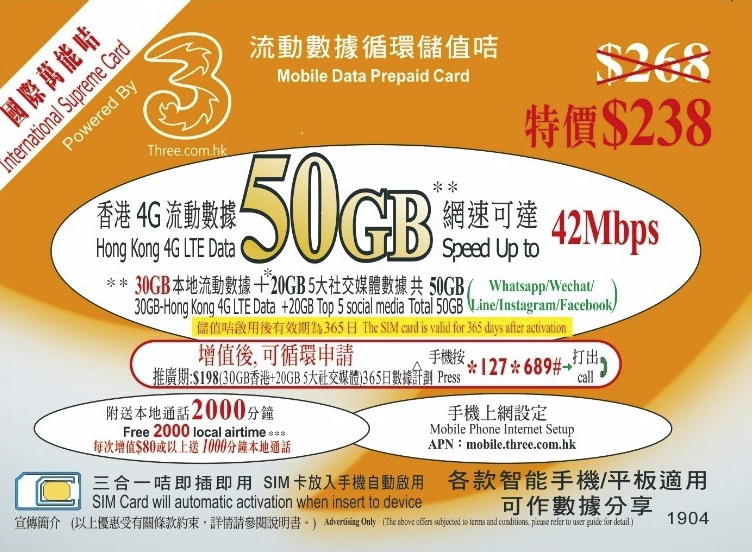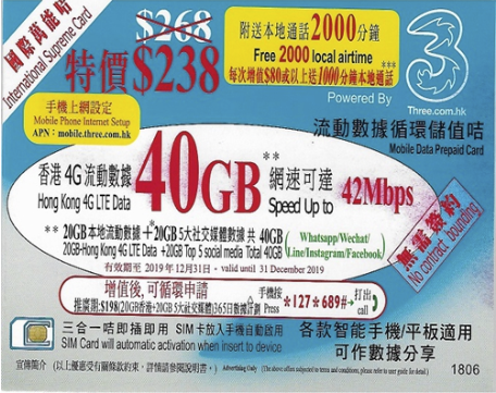 | 數據使用量 | 無限 |