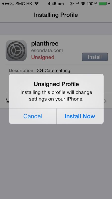 對於iOS7的用戶,行動數據網路可能會停用。 因此,你必須用以下其中一個方法安裝適合的APN:於瀏覽器內跟據以下連結地址輸入, 檔案便會自動下載﹐ 放入日本數據卡後便可安裝。