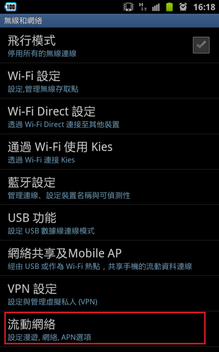 3.   選擇 [流動網路]