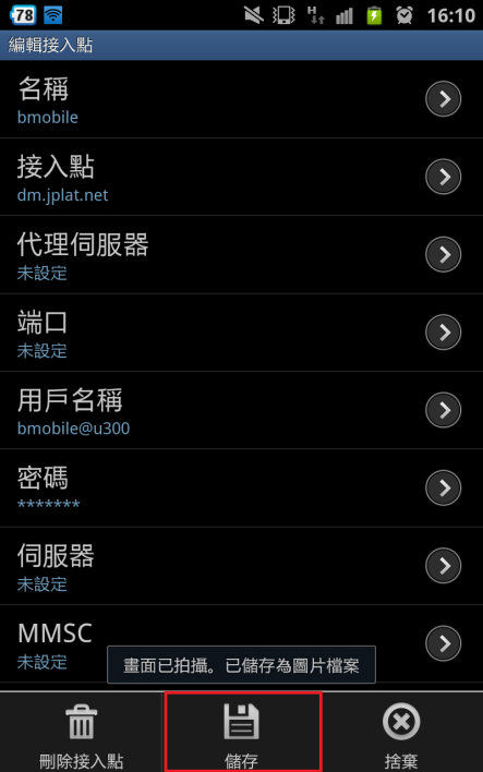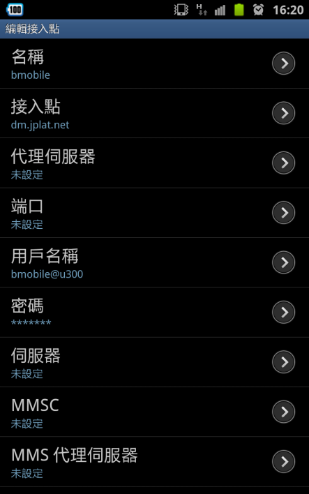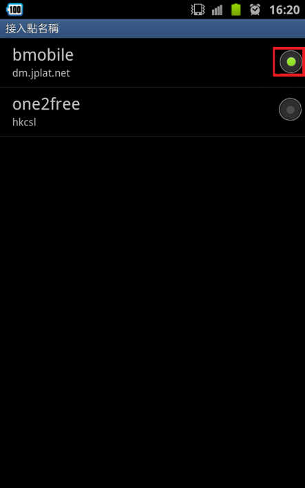 8. 返回APN 螢幕並選擇 bmobile