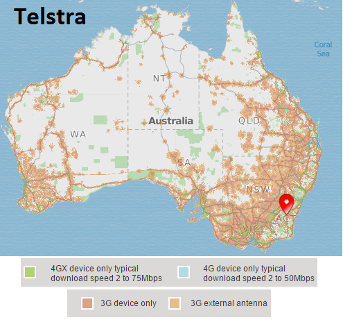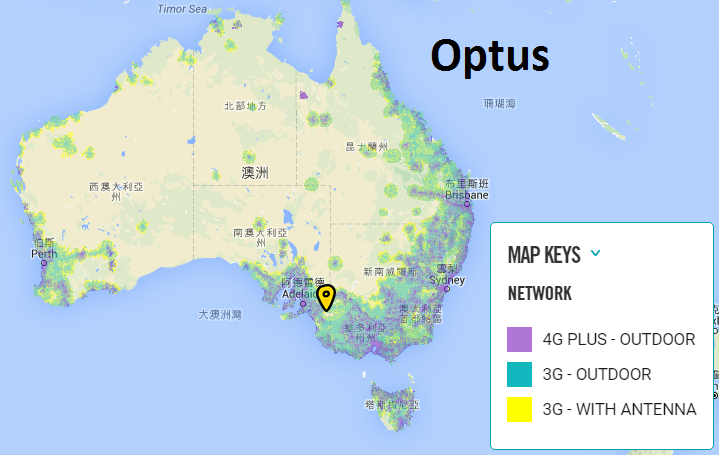 相比之下,Telstra 的數據覆蓋範圍和訊號都比 Optus 的好,例如:塔斯曼尼亞地區只接收到 Telstra 的訊號。