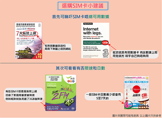 小編就建議大家可以首先睇吓SIM卡嘅總可用數據係幾多而並非首先睇日數 揀番自己想要嘅用量 因為有啲SIM卡即使可用嘅日子比較長 但數據就只得好少而用完就冇嘅話 要咁長日子其實都冇用。平日如果會用好多數據嘅朋友可以盡量揀啲有無限上網嘅SIM卡 咁就唔怕用過咗data上唔到網啦!